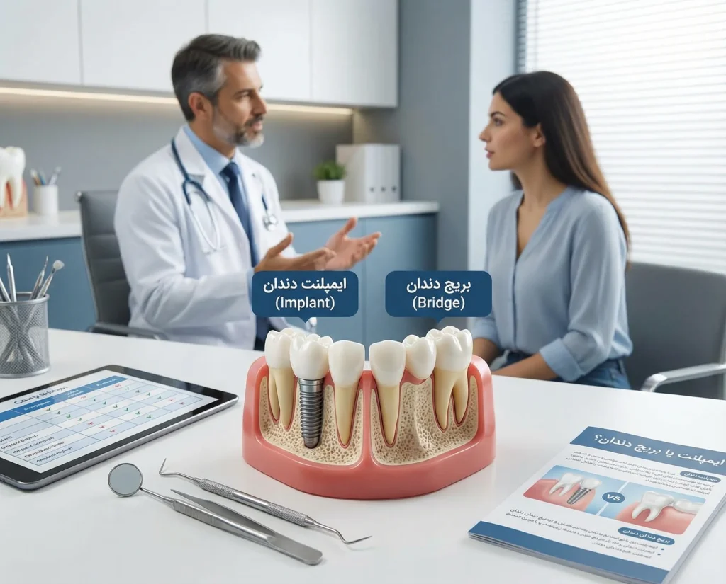انتخاب بین ایمپلنت یا بریج یک تصمیم حیاتی برای سلامت بلندمدت دهان و دندان شماست.