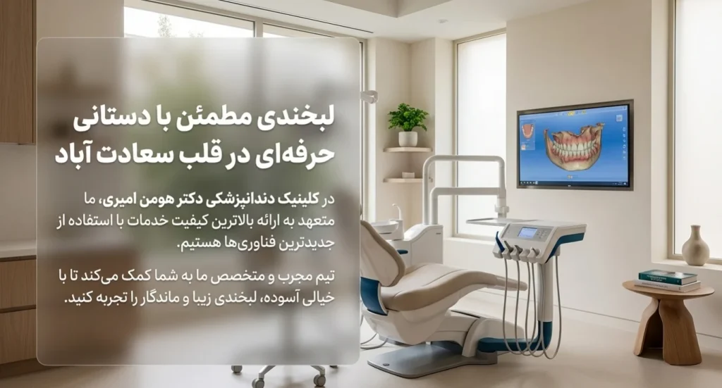 برای دریافت یک برآورد دقیق و مشاوره رایگان ایمپلنت دیجیتال در سعادت آباد، توصیه میشود با کلینیک دکتر هومن امیری تماس بگیرید تا پس از معاینه و بررسیهای لازم، بهترین برنامه درمانی و شفافیت کامل در مورد هزینهها به شما ارائه شود.
